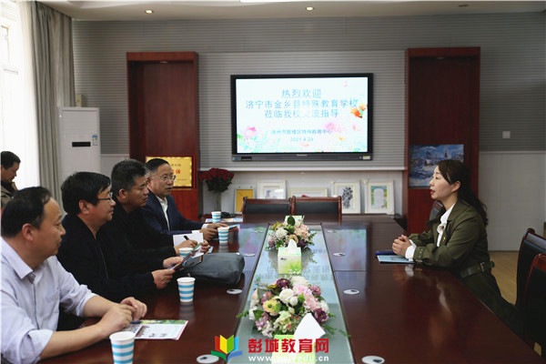 彭城教育:2021年4月29日濟寧市金鄉(xiāng)縣特殊教育學(xué)校朱濤校長率領(lǐng)了學(xué)校業(yè)務(wù)骨干一行來徐州市鼓樓區(qū)特殊教育中心參觀交流。張延珍校長率領(lǐng)導(dǎo)班子熱情接待,并精心安排了此次參觀交流活動。張延珍