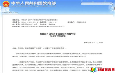 教育熱點(diǎn):據(jù)教育部官網(wǎng)消息,25日,教育部辦公廳發(fā)布關(guān)于加強(qiáng)義務(wù)教育學(xué)校作業(yè)管理的通知。以下為全文:各省、自治區(qū)、直轄市教育廳(教委),新疆生產(chǎn)建設(shè)兵團(tuán)教育局:為貫徹落實(shí)中央有關(guān)