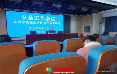 教育熱點:4月16日下午,徐州市西朱小學在會議室召開防范學生極端事件安全工作專題會議,學習貫徹省、市、區(qū)相關通知要求,分析研判學生安全工作形勢,研究部署學校安全工作。校長宋影桃出席