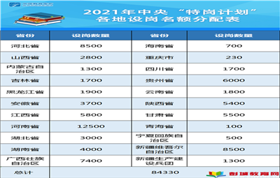 教育熱點:近日,教育部、財政部印發(fā)《關于做好2021年農村義務教育階段學校教師特設崗位計劃實施工作的通知》(點擊左下角“閱讀原文”可查看),明確2021年全國計劃招聘特崗教師84330名,重點向