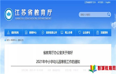 彭城教育:1月15日江蘇省教育廳官網(wǎng)發(fā)布關(guān)于做好2021年中小學(xué)幼兒園寒假工作的通知對放假、疫情防控等作了具體要求▼根據(jù)省教育廳辦公室關(guān)于做好2021年中小學(xué)幼兒園寒假工作的通知(蘇教辦基函