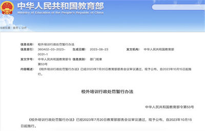 教育部頒布《校外培訓(xùn)行政處罰暫行辦法》!10月15日起施行