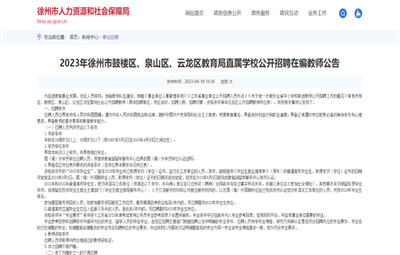 徐州教育:為促進(jìn)教育事業(yè)發(fā)展,優(yōu)化人員結(jié)構(gòu),加強(qiáng)教師隊(duì)伍建設(shè),根據(jù)《事業(yè)單位人事管理?xiàng)l例》《江蘇省事業(yè)單位公開招聘人員辦法》《關(guān)于進(jìn)一步做好全省中小學(xué)校新進(jìn)教師公開招聘工作的意