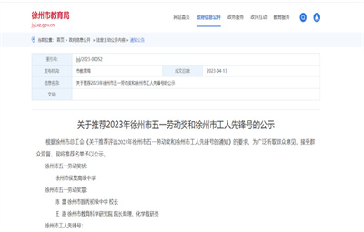 徐州教育:根據(jù)徐州市總工會(huì)《關(guān)于推薦評選2023年徐州市五一勞動(dòng)獎(jiǎng)和徐州市工人先鋒號的通知》的要求,為廣泛聽取群眾意見,接受群眾監(jiān)督,現(xiàn)將推薦名單予以公示。