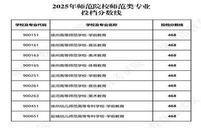 彭城教育:2025年師范院校師范類專業(yè)投檔分?jǐn)?shù)線