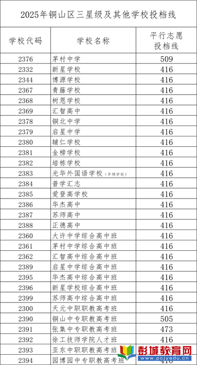 2025年銅山區(qū)三星級及其他學(xué)校投檔線