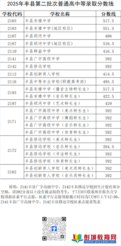 2025年豐縣第二批次普通高中等錄取分?jǐn)?shù)線