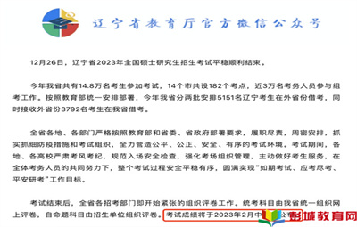 教育熱點:考研初試結(jié)束后,大家最關(guān)注的就是考研查分時間了。據(jù)了解,目前已有6個省市透露2023考研初試成績查詢時間,多為2月中下旬、2月21日左右,其中湖北省已發(fā)布正式通知確定成績公布時間