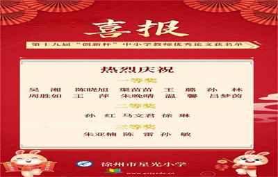 【喜報】熱烈祝賀星光小學(xué)16位教師在徐州市第十九屆“創(chuàng)新杯”優(yōu)秀教學(xué)論文評選活動中獲獎