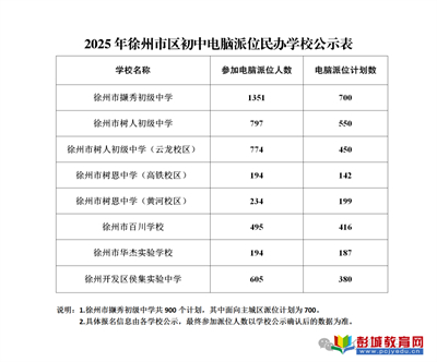 2025年徐州市區(qū)初中電腦派位民辦學(xué)校公示表