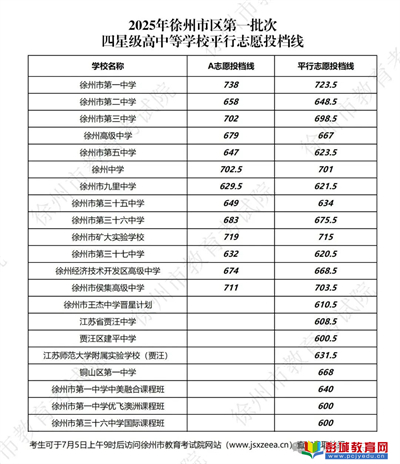 剛剛!2025年徐州市區(qū)第一批次四星級高中等學(xué)校平行志愿投檔線