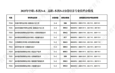 剛剛,2025年中職-本科3+4、高職-本科5+2分段培養(yǎng)專業(yè)投檔分?jǐn)?shù)線公布