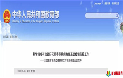彭城教育:12月30日,教育部召開全國教育系統(tǒng)疫情防控工作視頻調(diào)度會議,深入貫徹落實黨的十九屆六中全會精神和習(xí)近平總書記關(guān)于新冠肺炎疫情防控工作的重要講話和指示批示精神,落實黨中央、