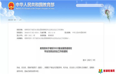 教育部關于做好2022屆全國普通高校畢業(yè)生就業(yè)創(chuàng)業(yè)工作的通知