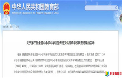 徐州教育:近日教育部發(fā)布了關(guān)于第三批全國中小學(xué)中華優(yōu)秀傳統(tǒng)文化傳承學(xué)校認(rèn)定結(jié)果的公示關(guān)于第三批全國中小學(xué)中華優(yōu)秀傳統(tǒng)文化傳承學(xué)校認(rèn)定結(jié)果的公示根據(jù)《教育部關(guān)于在全國中小學(xué)開展中