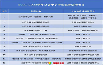 徐州教育:為貫徹落實教育部相關(guān)文件精神現(xiàn)將江蘇省教育廳審核通過的2021—2022學(xué)年全省中小學(xué)生競賽活動項目和江蘇省中小學(xué)生參加的全國競賽活動項目予以公布▼