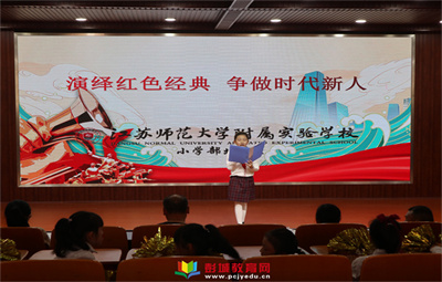 教育熱點(diǎn):江蘇師范大學(xué)附屬實(shí)驗(yàn)學(xué)校小學(xué)部北校區(qū)開展了以“演繹紅色經(jīng)典爭做時(shí)代新人”為主題的課本劇比賽。課本劇表演是一種形式靈活、內(nèi)涵豐富的語文活動,深受孩子們喜歡。同學(xué)們積極參