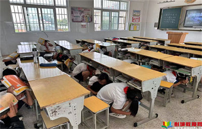 彭城教育:上午十點(diǎn),"嗚嗚、嗚嗚……"急促的警報(bào)聲響徹校園,聽到"地震",班主任立即告知學(xué)生"地震來了,不要慌,趕快躲避",學(xué)生們躲在課桌下,雙手抱頭。1分鐘后應(yīng)急疏散警報(bào)響起,各班學(xué)生