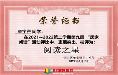 讓濃郁的書香充盈家庭的每一個角落——記單集鎮(zhèn)拐山小學開展第九周“閱讀之星”評選表彰活動