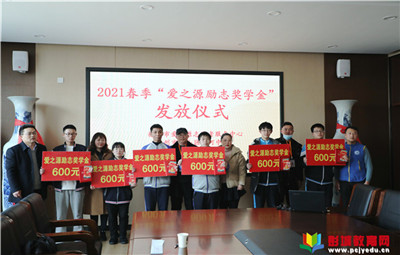 彭城教育:3月4日下午,銅山區(qū)夾河中學在學校力行樓四樓會議室舉行2021年春季學期“愛之源勵志獎學金”發(fā)放儀式,徐州市愛之源志愿者服務中心理事長高照、副理事長郭云賓等五位志愿者,夾河中
