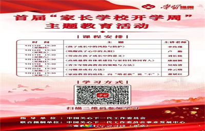 彭城教育:為推動《中華人民共和國家庭教育促進(jìn)法》的宣傳普及和貫徹實(shí)施,促進(jìn)未成年人健康成長,增進(jìn)家庭幸福和社會和諧,"學(xué)習(xí)強(qiáng)國”將開播首屆“家長學(xué)校開學(xué)周”主題教育線上活動,9月17