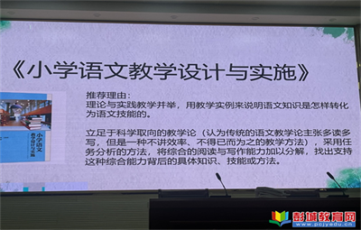 彭城教育:馬坡鎮(zhèn)中心小學(xué)“小荷”社團(tuán)讀書分享活動于9月2日在馬坡鎮(zhèn)中心小學(xué)報告廳開展。本次活動由“小荷”讀書社團(tuán)陳潔老師分享,分享的圖書名為《小學(xué)語文教學(xué)設(shè)計與實(shí)施》,作者名皮連