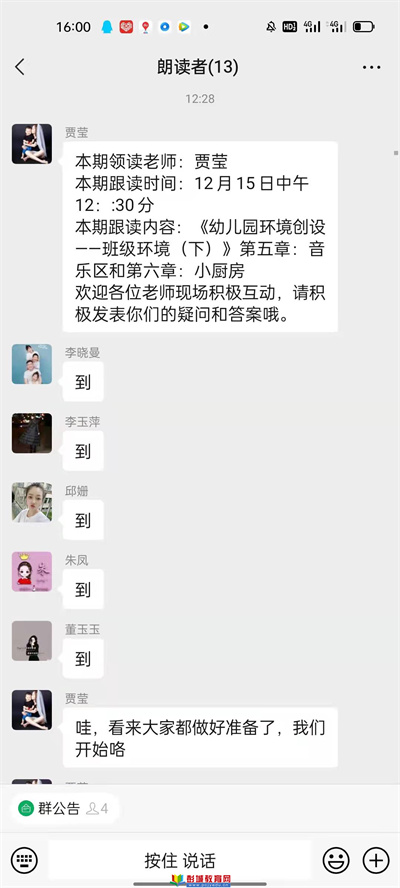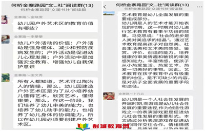 徐州教育:閱讀是開啟智慧之門的鑰匙。今天讓我們跟隨何橋鎮(zhèn)金寨路幼兒園“文瀾書社”進入《幼兒園環(huán)境創(chuàng)設—戶外環(huán)境》第七、八章的讀書學習。隨著老師們的準時簽到,讀書活動開始啦!1.幼