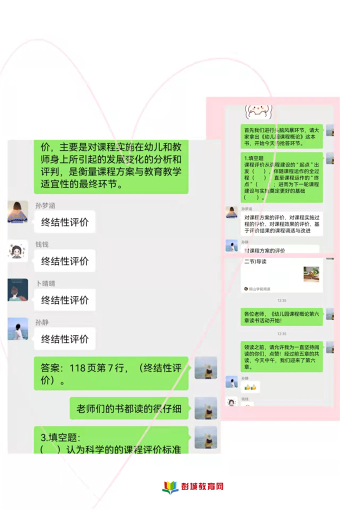 徐州教育:2021年11月25日中午12:30,銅山區(qū)馬坡鎮(zhèn)和暢莊幼兒園所有讀書社團成員準時開啟《幼兒園課程概論》第六章《幼兒園課程評價》的一、二兩個章節(jié)的學習之旅。經過對前五章的閱讀,我園老師