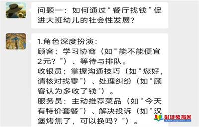 教育熱點:近期,躍進(jìn)幼兒園開展了一場別開生面的線上讀書活動,教師們圍繞《幼兒園自主游戲觀察與記錄》中“餐廳找錢”“爭當(dāng)收銀員”“愛請客的小貝”三個大班案例展開深入研討。活動中,