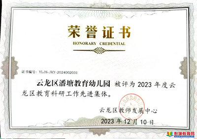 【喜報】熱烈祝賀徐州市云龍區(qū)潘塘教育幼兒園榮獲2023年度云龍區(qū)教育科研工作先進集體