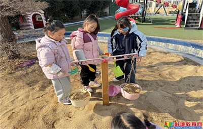 教育熱點:近日,汴塘鎮(zhèn)中心幼兒園大一班在戶外沙池開展了一場趣味十足的科學(xué)探索活動,孩子們化身小小科學(xué)家,玩轉(zhuǎn)簡易天平探索重量奧秘。活動中,孩子們兩兩合作,用小鏟子將沙子裝入不同