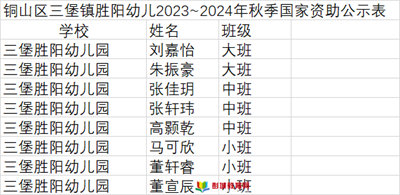 “資助暖心,情潤童心”——銅山區(qū)三堡勝陽幼兒園2023年秋季國家資助公示