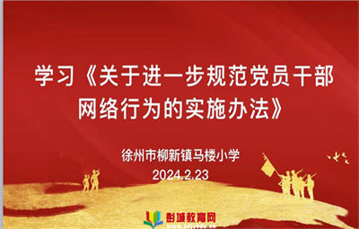 彭城教育:為進一步提高廣大教師黨員干部的網(wǎng)絡(luò)意識,規(guī)范網(wǎng)絡(luò)行為,2024年2月23日下午,徐州市柳新鎮(zhèn)馬樓小學(xué)黨支部召開黨員干部和全體教師大會,集中學(xué)習了《關(guān)于進一步規(guī)范黨員干部行為的實