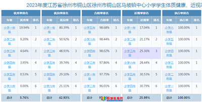 銅山區(qū)馬坡鎮(zhèn)中心小學(xué)體質(zhì)健康、近視率排名公示
