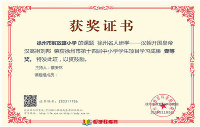 徐州教育:由徐州市教育科學(xué)研究院組織的第十四屆徐州市中小學(xué)生項目學(xué)習(xí)(研究性學(xué)習(xí))成果征集評比活動日前圓滿結(jié)束,經(jīng)過評委嚴格評選,徐州市解放路小學(xué)提交的19件參賽作品中,榮獲一等