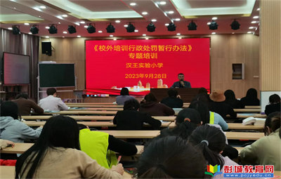 彭城教育:為了進一步“優(yōu)化師德,端正師風(fēng)”,切實擔(dān)負起教書育人的重任,造就一支讓社會滿意、讓家長放心、學(xué)生信賴的教師隊伍,9月28日,漢王實驗小學(xué)開展開展《校外培訓(xùn)行政處罰暫行辦法