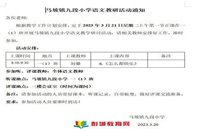 展語文課堂風采,促教學能力成長——馬坡鎮(zhèn)九段小學舉行一年級語文聽課活動