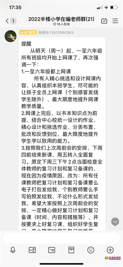 徐州教育:賈汪區(qū)汴塘鎮(zhèn)半樓小學(xué)12月12日中午12點40分的周前會上,張良文校長重點講了一件事:有關(guān)期末復(fù)習(xí)事宜。他強調(diào):1.所有任課教師確保在第17周周四之前結(jié)束新課(只能提前不能推遲)2.第17