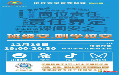 彭城教育:為進(jìn)一步加強(qiáng)校園安全管理,有效履行班級安全管理職責(zé),增強(qiáng)教師安全意識,提高學(xué)生自我保護(hù)能力。2022年12月16日,銅山區(qū)沿湖小學(xué)組織全體教職員工,在線參與了由教育局組織的《校