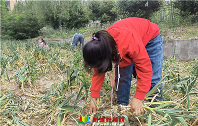 大蒜豐收季 蒜童最忙時——記單集鎮(zhèn)拐山小學“我?guī)Ш⒆尤趧印毕盗袌蟮溃ㄆ撸?/a>