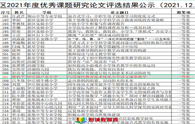 教育熱點(diǎn):2021年銅山區(qū)優(yōu)秀課題論文評選圓滿結(jié)束,學(xué)校4名教師的論文均獲獎。其中,學(xué)校路伯永老師的《“以人為本”教學(xué)管理模式研究》一文榮獲特等獎,蔣伯平老師的《巧用現(xiàn)代教育技術(shù)優(yōu)化