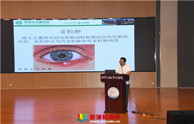 教育熱點(diǎn):眼睛是獲取知識的源泉,是傳遞信息的門戶。為增強(qiáng)學(xué)生的護(hù)眼意識,養(yǎng)成良好的用眼習(xí)慣,遠(yuǎn)離眼病困擾,9月22日上午,學(xué)校邀請徐州市兒童醫(yī)院眼科專家郭寶醫(yī)生,為同學(xué)們開展了“兒
