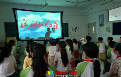 向建黨一百周年獻禮——退休老黨員尚建武老師給新城實驗小記者團播放紅色電影《閃閃的紅星》