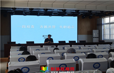 教育熱點:為了進一步提高學(xué)校安全管理水平,全面推行安全管理工作“一崗雙責(zé)”制,明確崗位安全職責(zé),構(gòu)筑全方位、即時式的安全管理網(wǎng)狀格局,5月27日,新興小學(xué)在校報告廳召開“一崗雙責(zé)齊