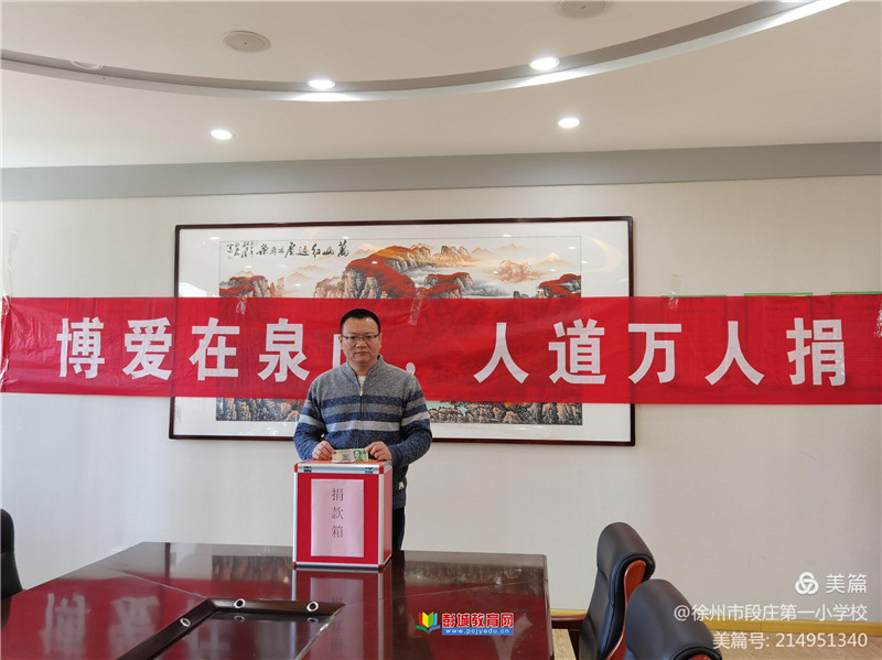 彭城教育:為了弘揚(yáng)人道、博愛、奉獻(xiàn)的紅十字精神,徐州市段莊第一小學(xué)校于5月20日上午舉行了“博愛在泉山,人道萬人捐”愛心捐款活動。段莊一小的師生們伸出援手,奉獻(xiàn)愛心。老師們有序的將