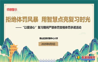 拒絕體罰風(fēng)暴 用智慧點亮復(fù)習(xí)之光 ——銅山區(qū)房村鎮(zhèn)中心小學(xué)開展復(fù)習(xí)期間嚴(yán)禁體罰變相體罰承諾活動