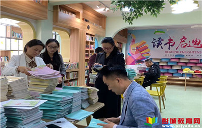 教育熱點(diǎn):5月7號(hào)上午銅山區(qū)黃集實(shí)驗(yàn)小學(xué)迎來鎮(zhèn)業(yè)務(wù)視導(dǎo),圖書室內(nèi)一本本作業(yè)整整齊齊的擺放著,展現(xiàn)了黃集實(shí)驗(yàn)小學(xué)的精神面貌,視導(dǎo)組領(lǐng)導(dǎo)們認(rèn)真仔細(xì)的檢查每本作業(yè),就教師對(duì)作業(yè)的布置及