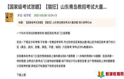 徐州教育:3月28日,一則“山東青島教招考試大量泄題”的網(wǎng)帖引發(fā)關注。網(wǎng)友稱,在青島教師招聘考試中,某機構押中多道原題,甚至連選項都是一樣……不少網(wǎng)友也發(fā)微博表示,每個學科都能押中