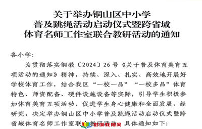 關(guān)于舉辦銅山區(qū)中小學(xué)普及跳繩活動啟動儀式暨跨省域 體育名師工作室聯(lián)合教研活動的通知