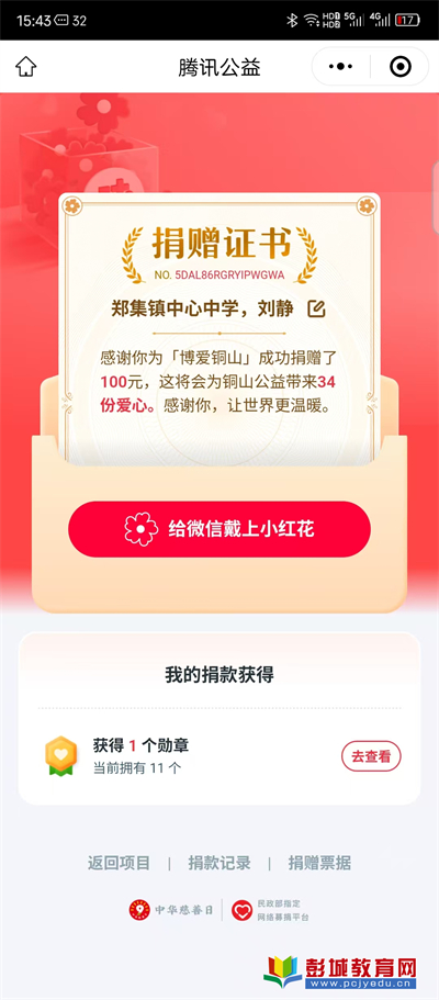 彭城教育:一滴水能反射出太陽的光輝,一份愛足以體現(xiàn)社會的溫暖。扶危助困是美好的情感,更是博大的胸襟。2025年5月8日,鄭集鎮(zhèn)中心中學(xué)舉行了“5·8人道公益日”捐款活動。公益捐款本著自愿的